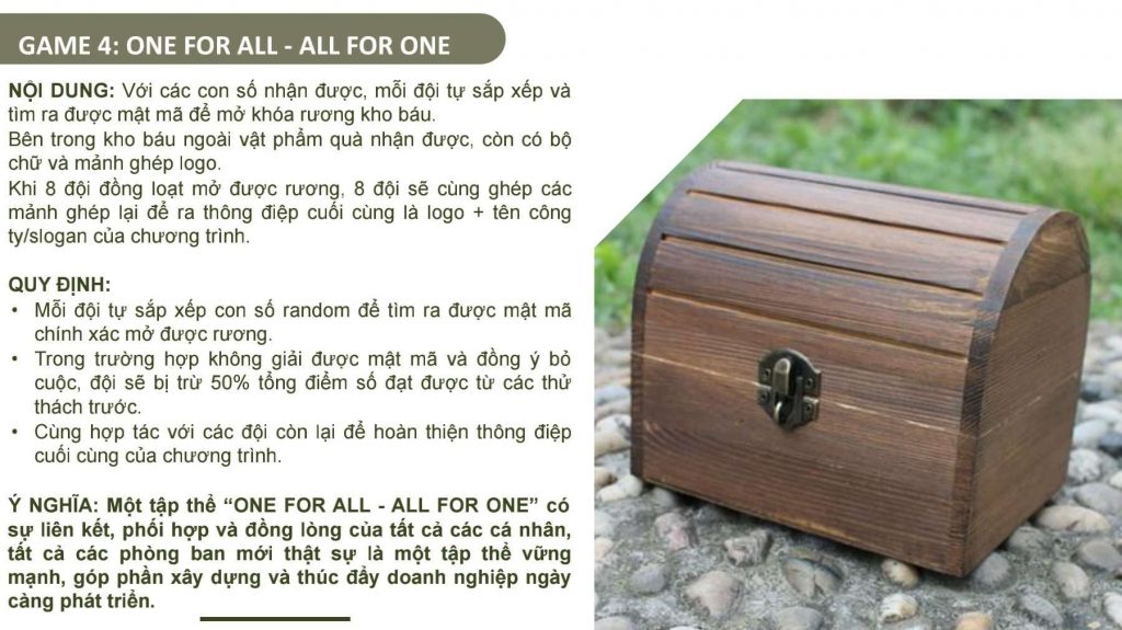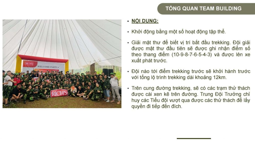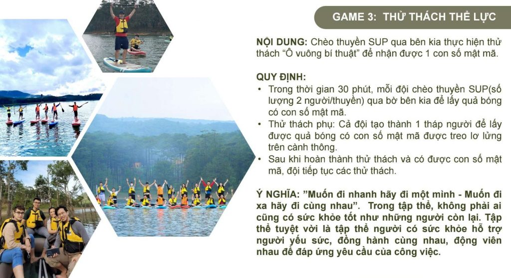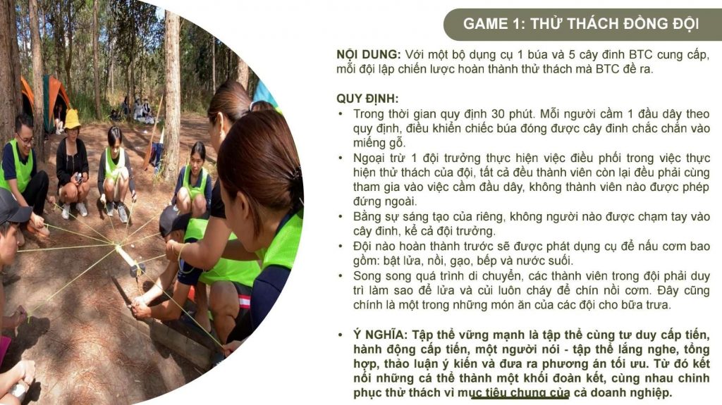Chương trình TEAM BUILDING với các thử thách mang tính sinh tồn thể hiện tinh thần đồng đội, bền bỉ, dám thay đổi, dám chinh phục.