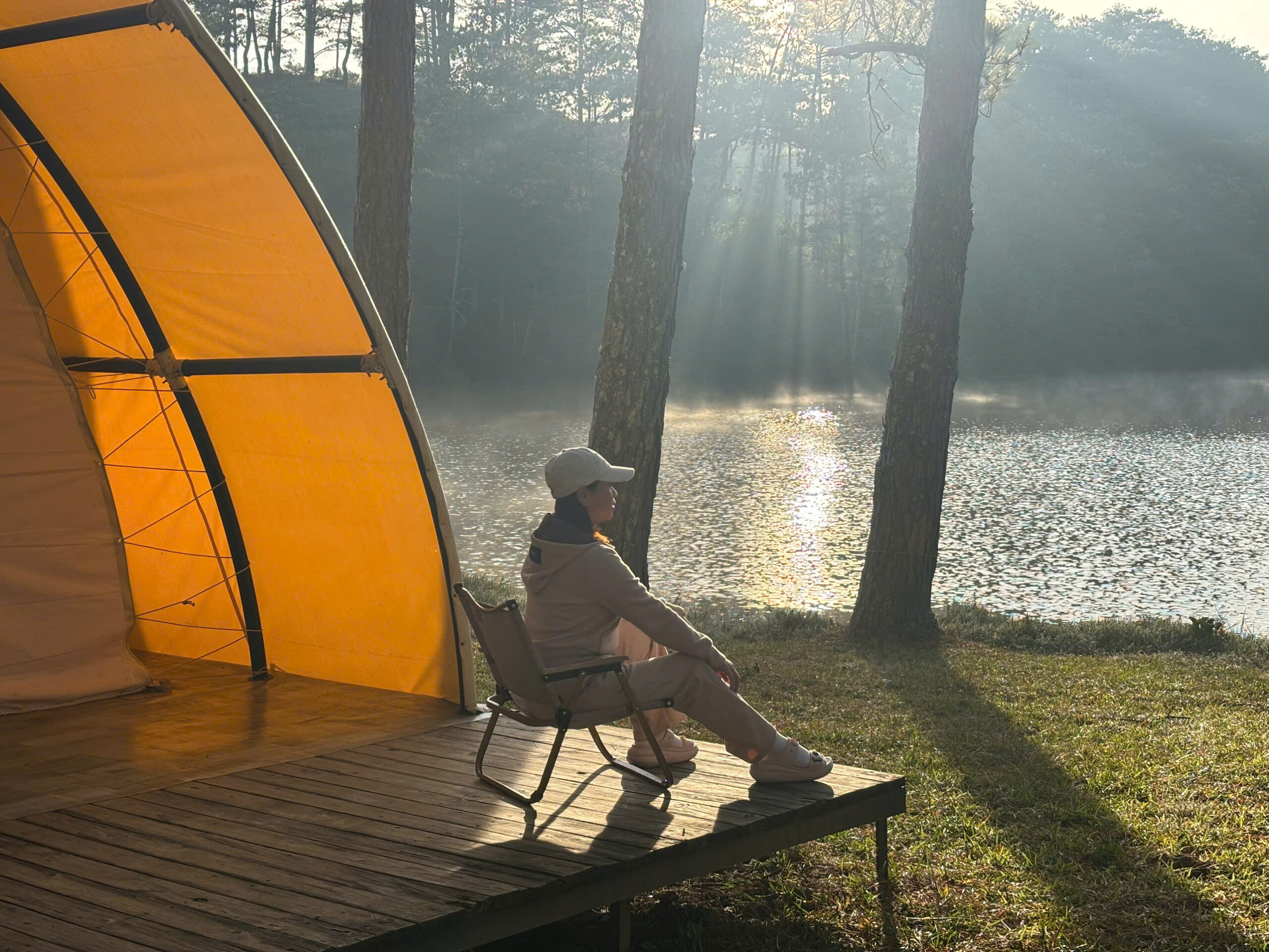 Nếu như cắm trại tự túc đòi hỏi bạn phải tự chuẩn bị lều bạt, chịu đựng sự thiếu hụt tiện nghi và đối mặt với thời tiết thất thường của Đà Lạt, thì cắm trại tại Golden Camp mang đến một sự đối lập hoàn hảo. Tại đây, sự hoang sơ của rừng thông không còn đồng nghĩa với sự khắc nghiệt, mà trở thành phông nền cho một kỳ nghỉ dưỡng. Điểm nhấn lớn nhất chính là những chiếc lều cao cấp với diện tích rộng rãi, cho phép du khách có thể đứng thẳng và di chuyển thoải mái bên trong – một điều xa xỉ so với những chiếc lều cá nhân nhỏ hẹp.