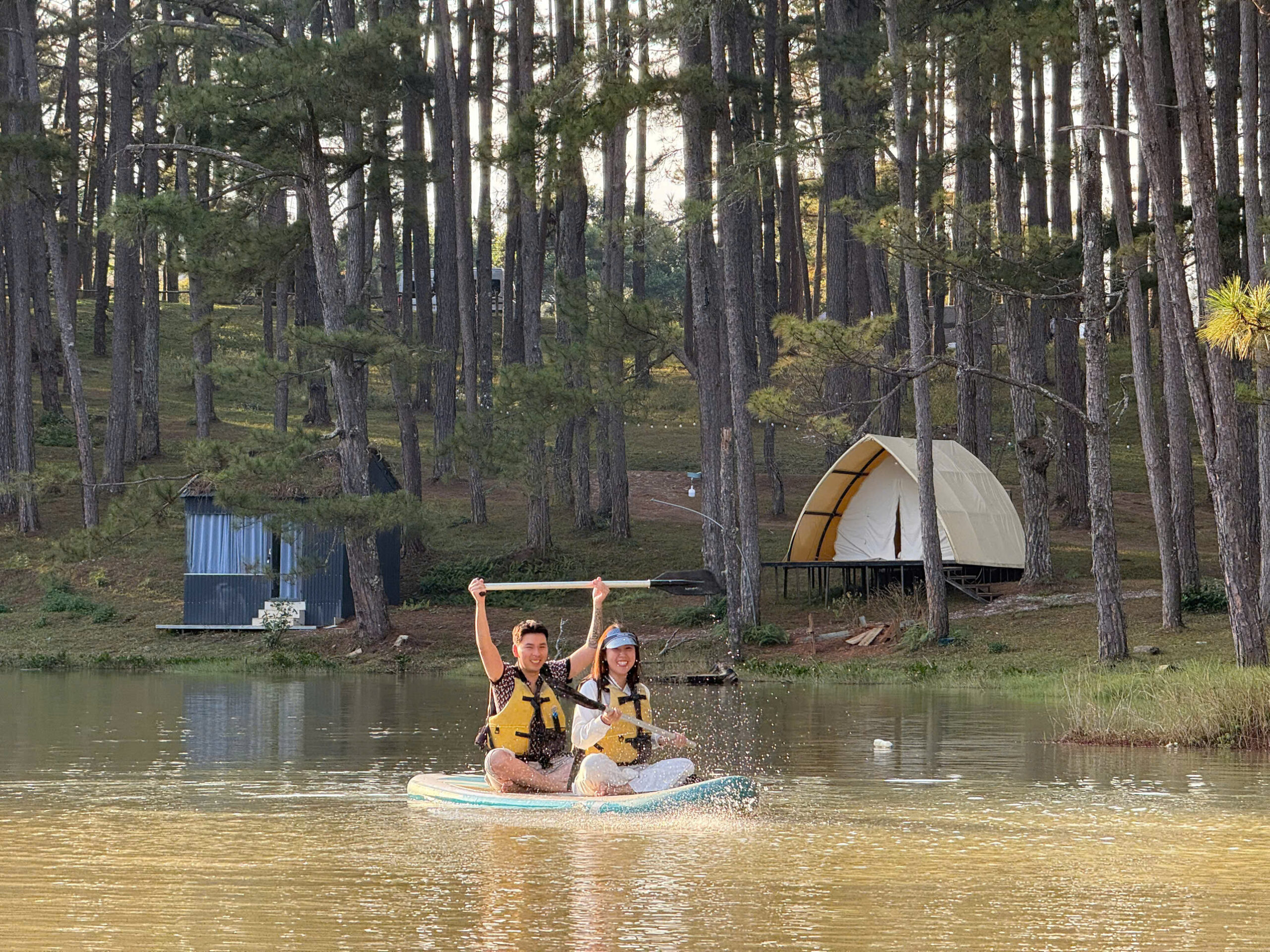 Sức hút của mô hình này còn nằm ở khả năng biến không gian thiên nhiên thành một tác phẩm nghệ thuật sống động. Khi hoàng hôn buông xuống trên mặt hồ Tuyền Lâm, toàn bộ khu trại tại Golden Camp sẽ được thắp sáng bởi bóng đèn LED lung linh, tạo nên một khung cảnh huyền ảo và cực kỳ lãng mạn cho những tín đồ yêu thích chụp ảnh. An ninh 24/7 cũng là một điểm khác biệt then chốt; du khách có thể hoàn toàn yên tâm tận hưởng sự tĩnh lặng của rừng đêm mà không phải lo lắng về các vấn đề an toàn hay thú hoang, nhờ đội ngũ nhân viên túc trực và hệ thống quản lý chuyên nghiệp. Sự kết hợp giữa trải nghiệm thiên nhiên thuần khiết và tiện nghi hiện đại này chính là chìa khóa giúp mô hình cắm trại Golden Camp chiếm trọn cảm tình của những người muốn trốn khỏi sự ồn ào đô thị mà vẫn được nuông chiều bởi những dịch vụ chu đáo nhất.