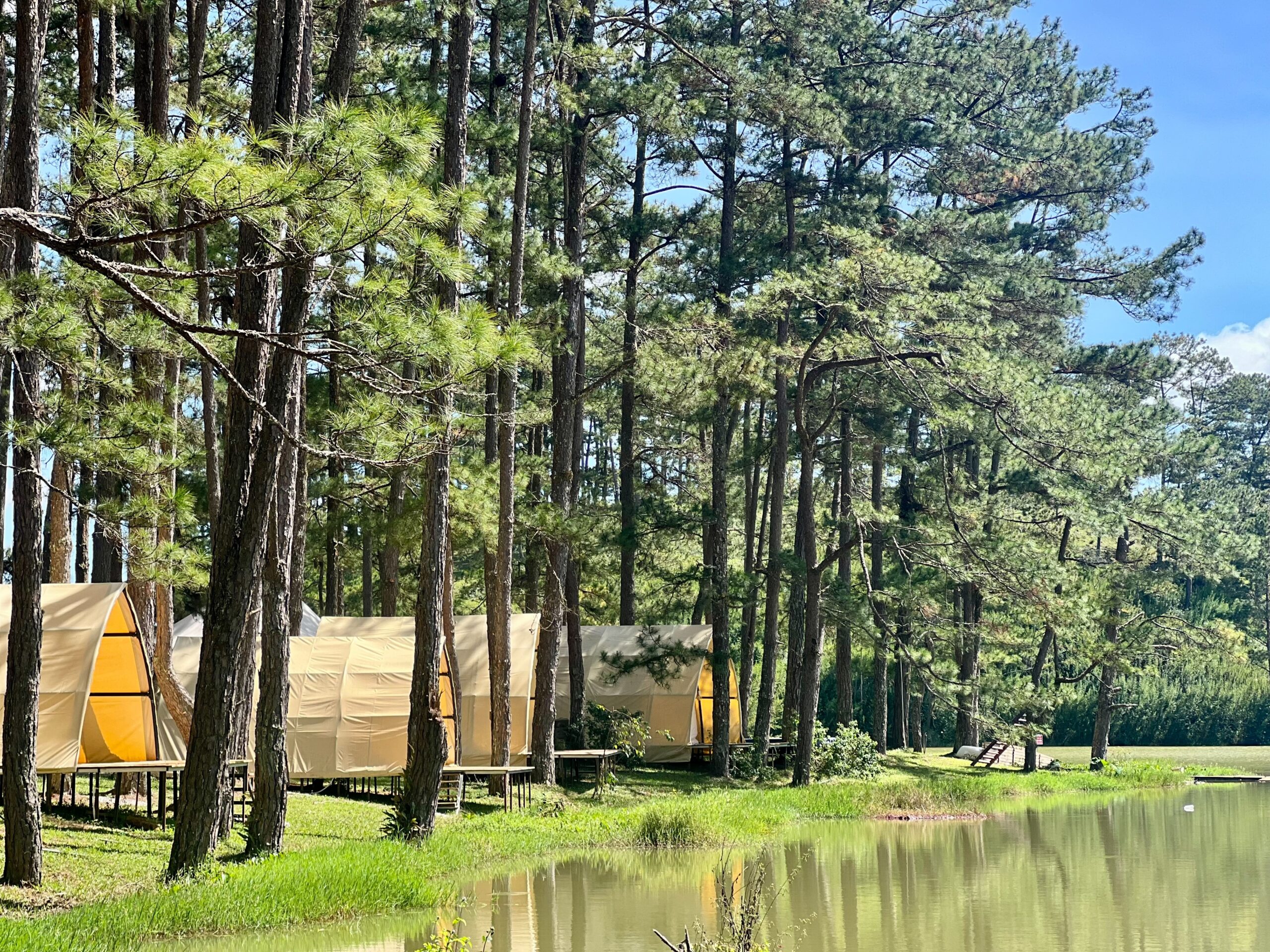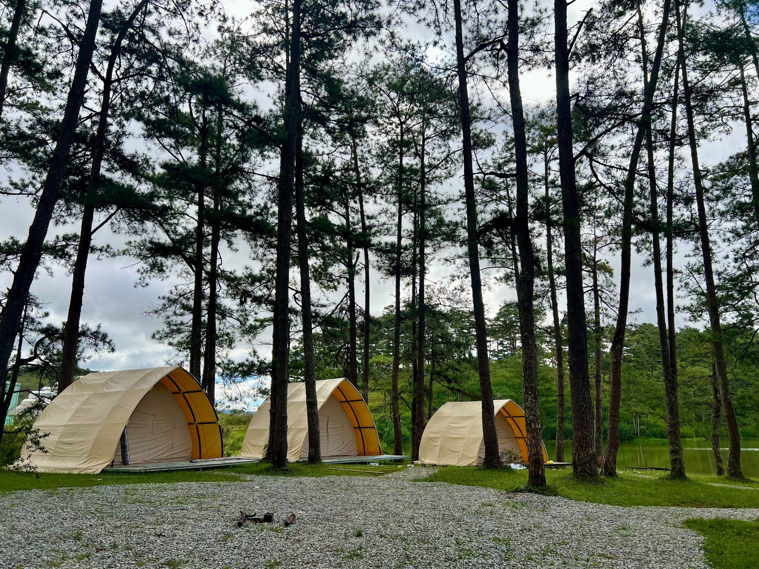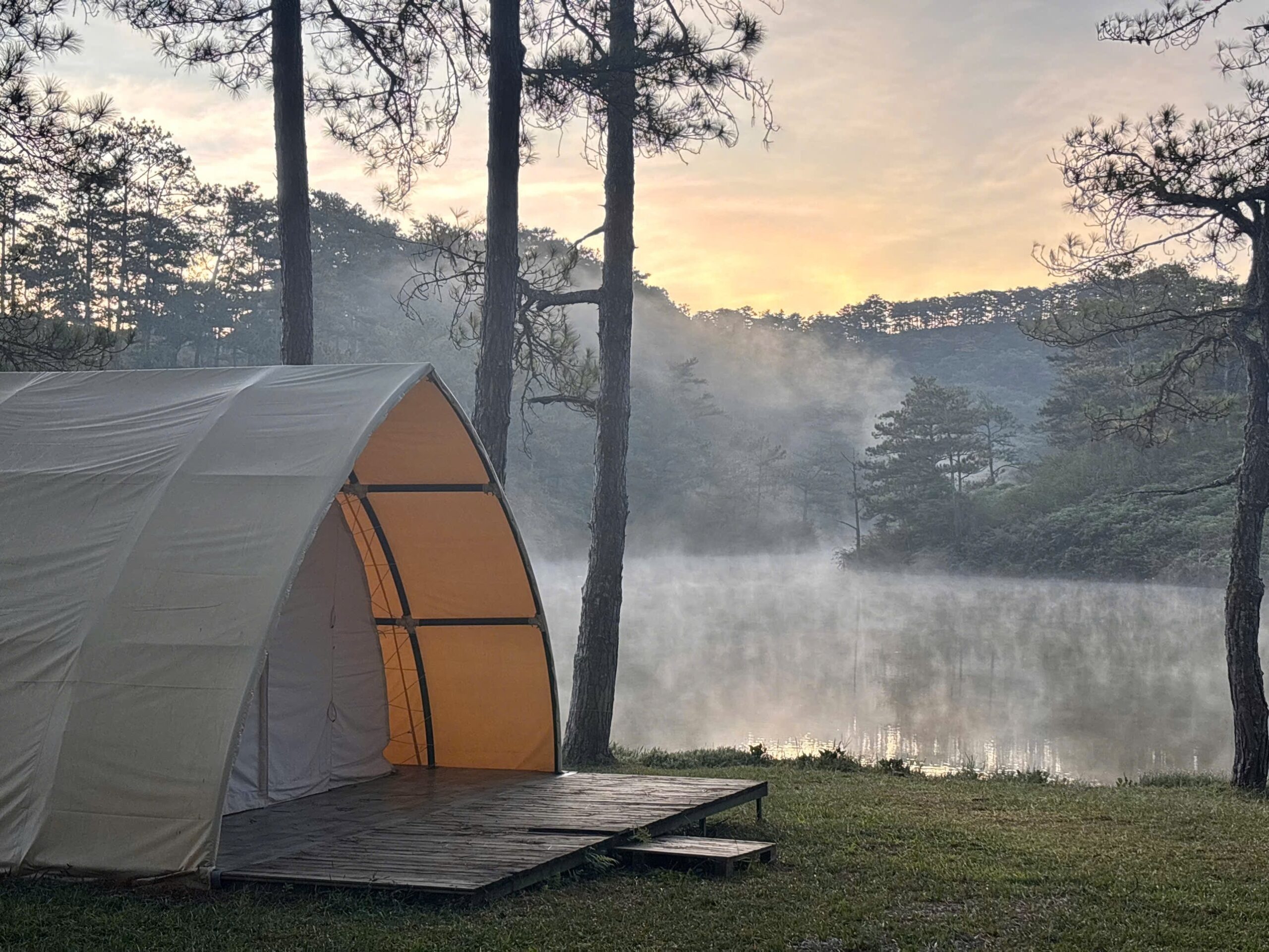 Nếu như cắm trại tự túc đòi hỏi bạn phải tự chuẩn bị lều bạt, chịu đựng sự thiếu hụt tiện nghi và đối mặt với thời tiết thất thường của Đà Lạt, thì cắm trại tại Golden Camp mang đến một sự đối lập hoàn hảo. Tại đây, sự hoang sơ của rừng thông không còn đồng nghĩa với sự khắc nghiệt, mà trở thành phông nền cho một kỳ nghỉ dưỡng. Điểm nhấn lớn nhất chính là những chiếc lều cao cấp với diện tích rộng rãi, cho phép du khách có thể đứng thẳng và di chuyển thoải mái bên trong – một điều xa xỉ so với những chiếc lều cá nhân nhỏ hẹp.