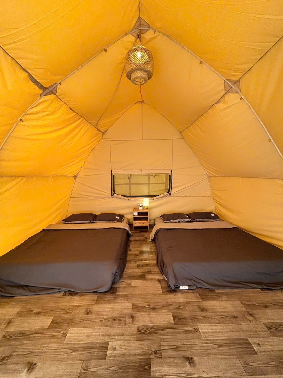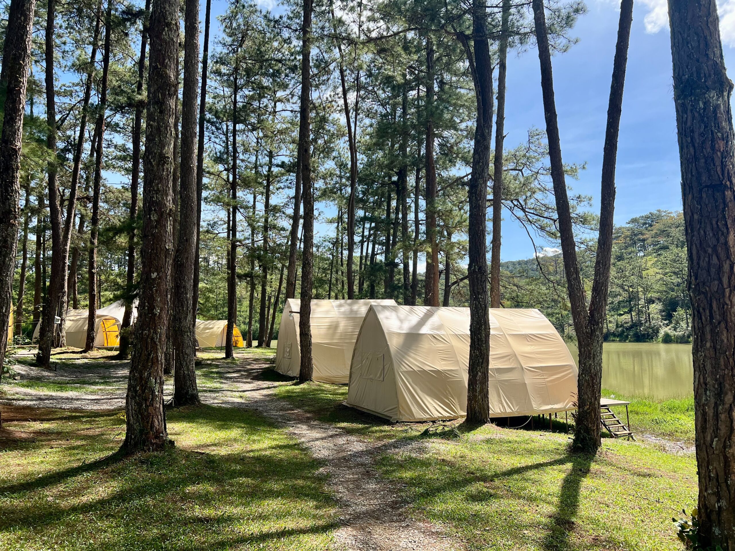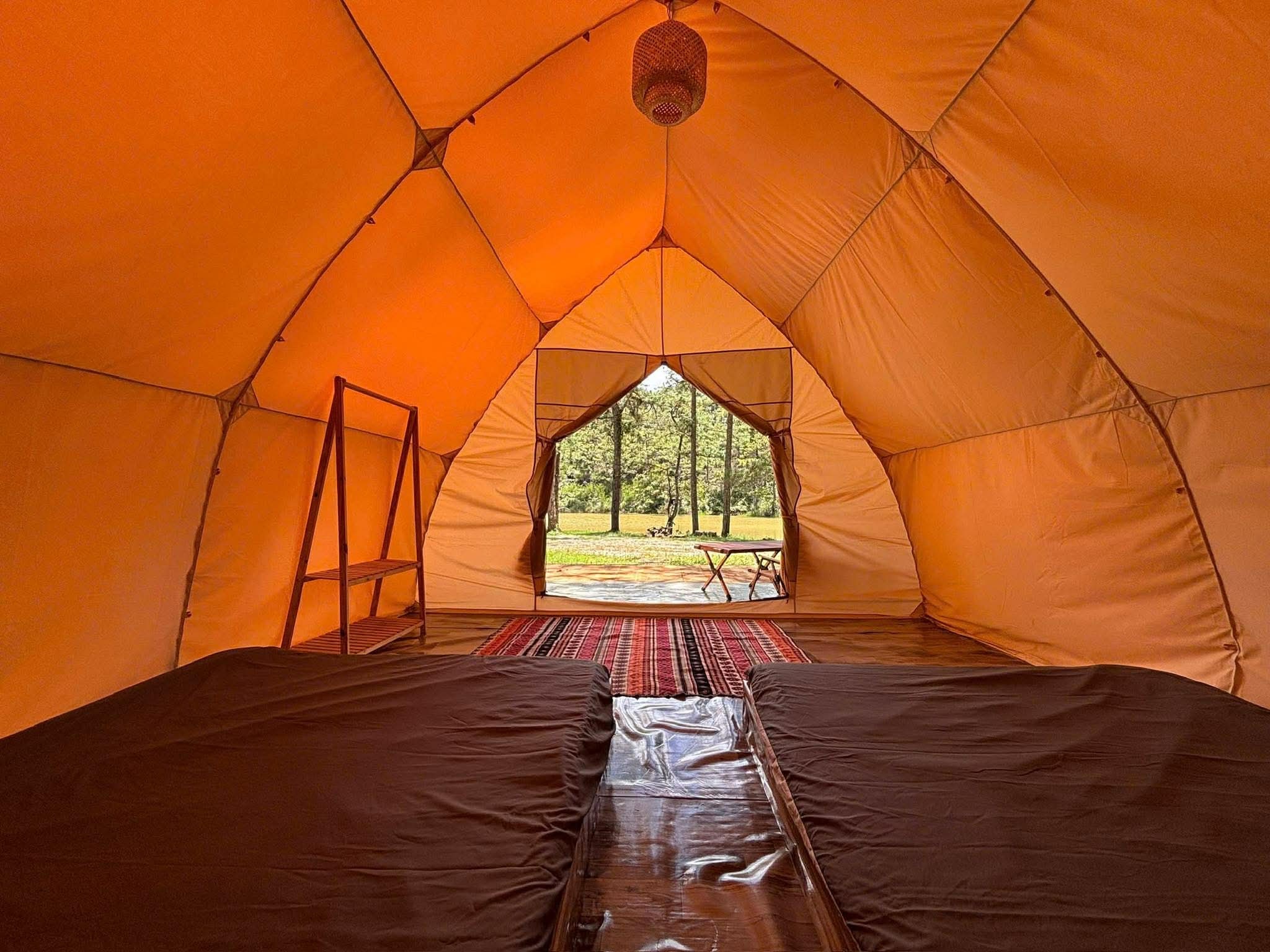 Nếu như cắm trại tự túc đòi hỏi bạn phải tự chuẩn bị lều bạt, chịu đựng sự thiếu hụt tiện nghi và đối mặt với thời tiết thất thường của Đà Lạt, thì cắm trại tại Golden Camp mang đến một sự đối lập hoàn hảo. Tại đây, sự hoang sơ của rừng thông không còn đồng nghĩa với sự khắc nghiệt, mà trở thành phông nền cho một kỳ nghỉ dưỡng. Điểm nhấn lớn nhất chính là những chiếc lều cao cấp với diện tích rộng rãi, cho phép du khách có thể đứng thẳng và di chuyển thoải mái bên trong – một điều xa xỉ so với những chiếc lều cá nhân nhỏ hẹp.