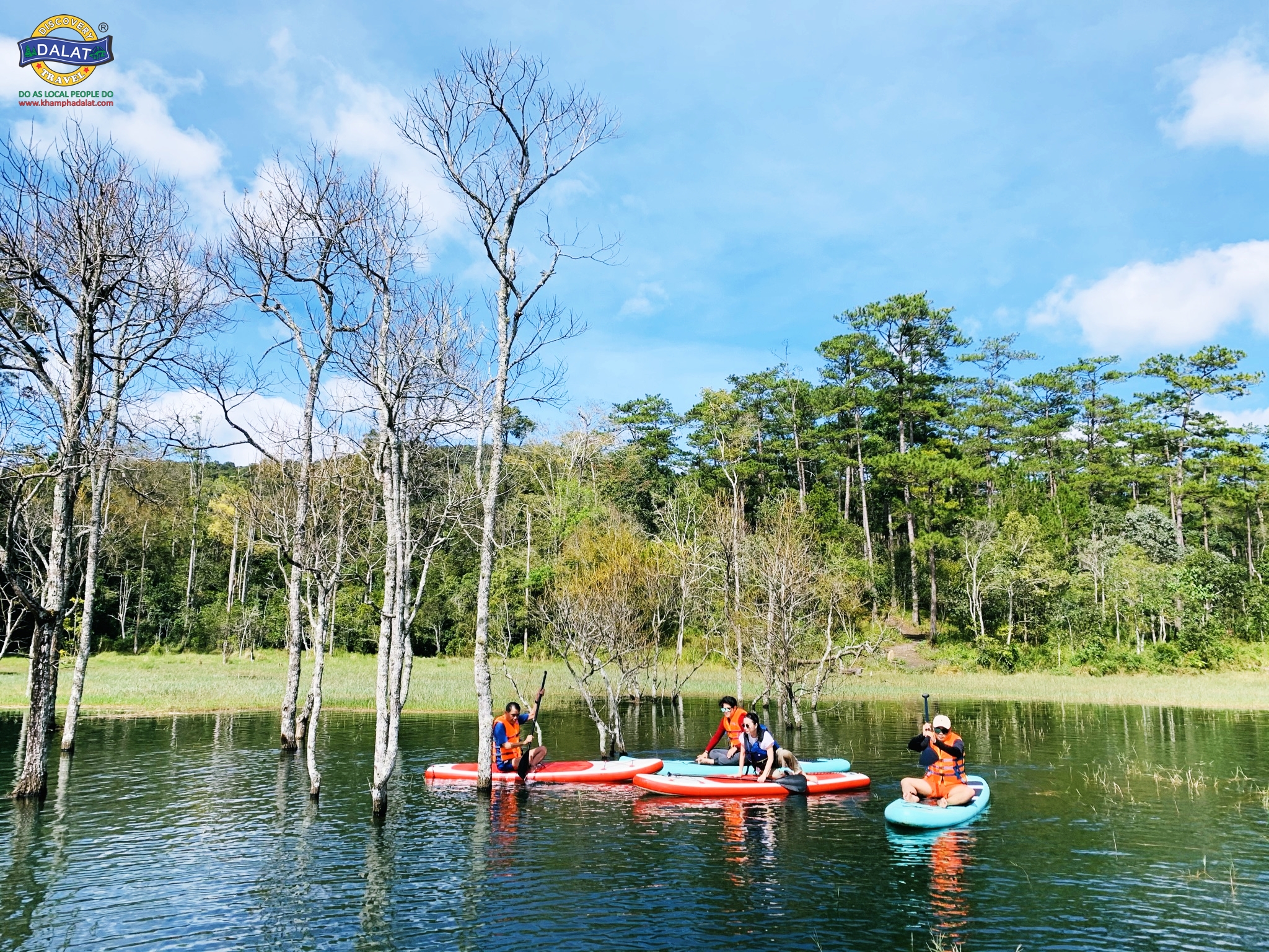 Trải nghiệm chèo SUP tại Đà Lạt, khám phá Hồ Tuyền Lâm và khu vực Suối Tía – nơi đang là điểm nóng với rừng ngập nước đầy cuốn hút.