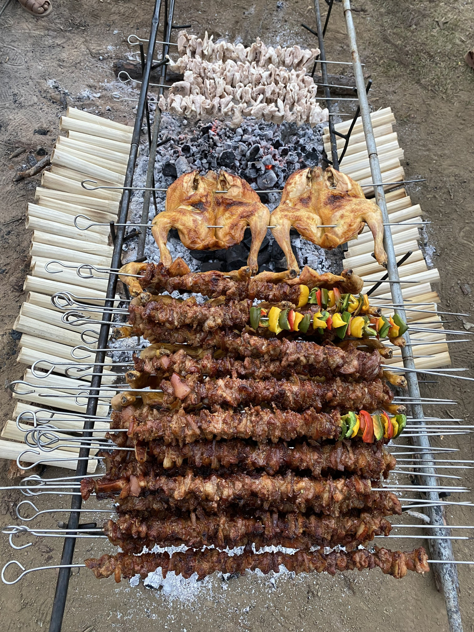 • 01 bữa ăn tối BBQ bao gồm thịt gà nướng mọi, thịt heo nướng xiên, cá lóc nướng, rau salad trộn, cháo gà, khoai lang bắp nướng và rượu cần Đà Lạt.